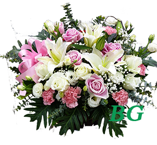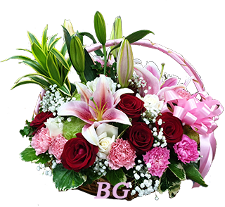 V 10 : กระเช้าดอกไม้สด รอบด้าน ขาว ชมพู