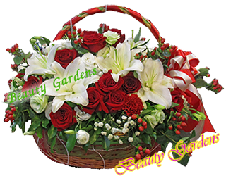 V 12 : กระเช้าดอกไม้สด รอบด้าน ขาว แดงราคา 2,500 บาท