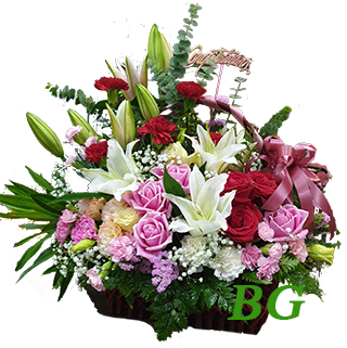 V 09 : กระเช้าดอกไม้สด ด้านเดียว กลาง