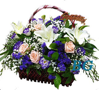 V 06 : กระเช้าดอกไม้สด ฟ้า ขาว ชมพู