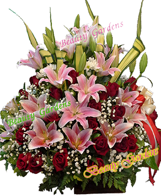 V 08 : กระเช้าดอกไม้สด ด้านเดียว ใหญ่