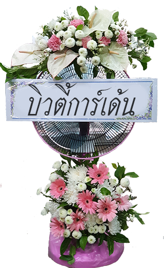 W 82 : พวงหรีด พัดลม 16 นิ้ว ประดับดอกไม้