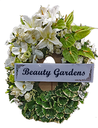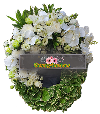 W 37 : พวงหรีด สีขาว เขียว